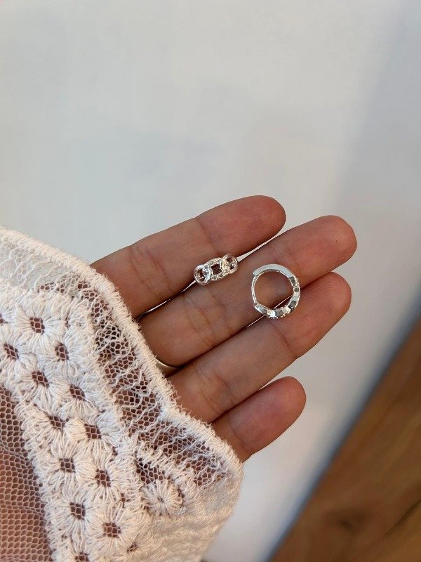 Argollita diseño cadenas de 9 mm con mini strass laminada en plata , largo total 9 mm. Precio por Par. Cód.1000095