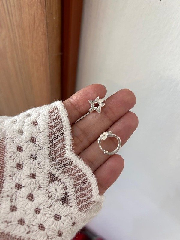 Argollita estrella calada de 9 mm con mini strass laminada en plata , largo total 9 mm. Precio por Par. Cód.1000095