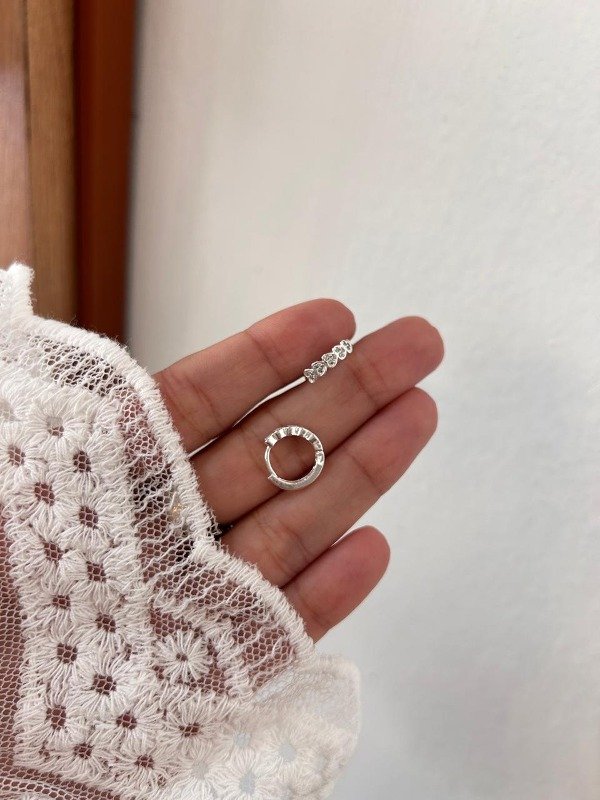 Argollita diseño mini corazón de 9 mm con mini strass laminada en plata , largo total 9 mm. Precio por Par. Cód.1000095