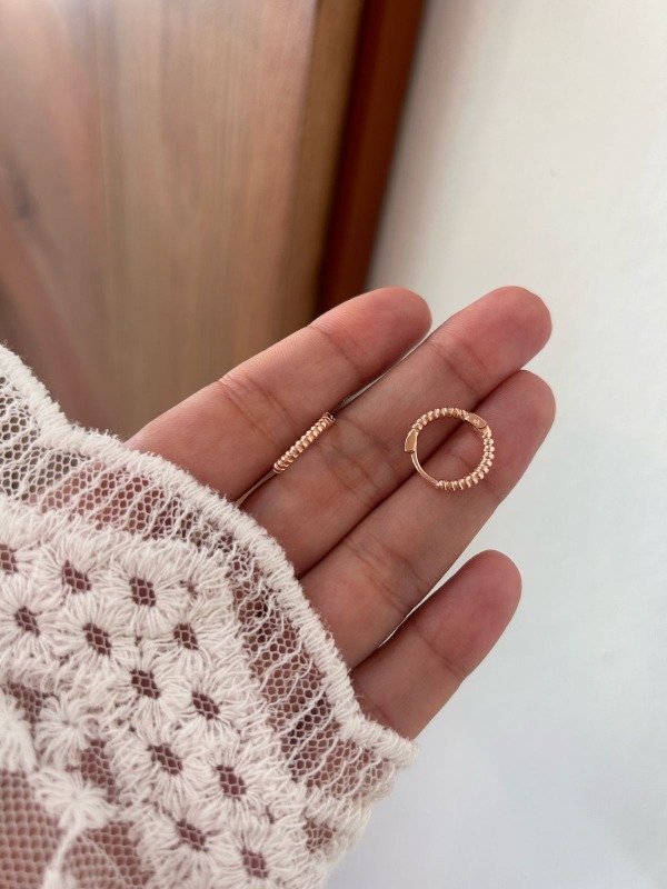 Argolla de 10 mm de diámetro con diseño tramado en plata-925 rose. ¡Ideales para usar en el primer agujerito! Precio por par. cod.1000017. sku:254