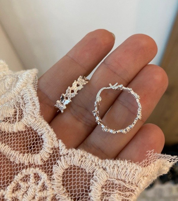 Argollas 16mm de diámetro con diseño de mariposas y cubic. ¡Ideales para el primer agujerito! Precio y venta por par. Cód.1000007