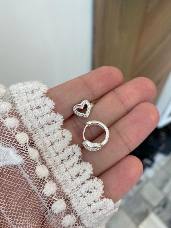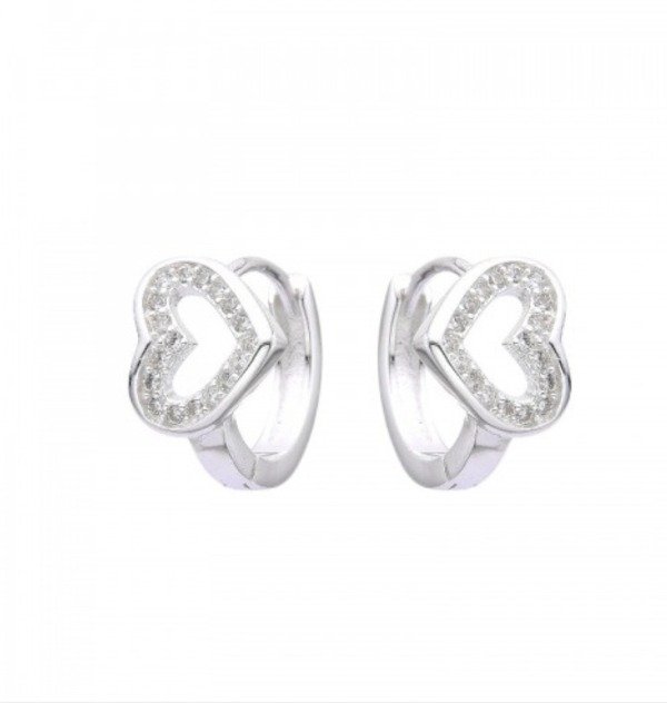 Argolla de 9mm con diseño de corazón hueco con cubic. ¡Ideales para usar en primer agujerito! Precio por par. Cód.1000004.sku 62