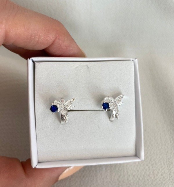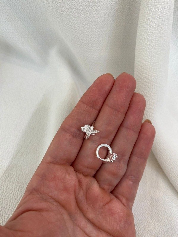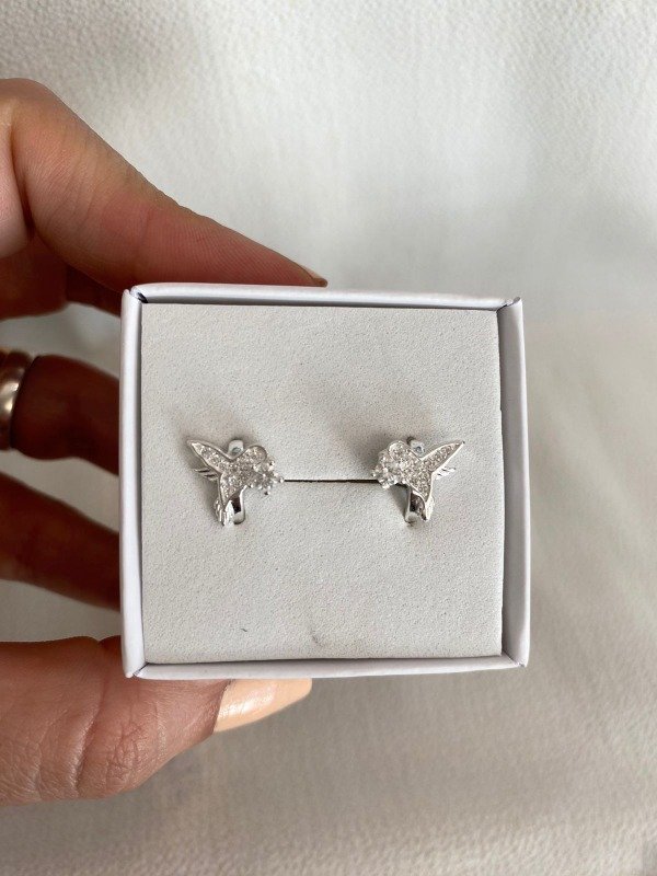 Argollitas de 8 mm con hermoso diseño de colibrí con mini strass y uno mas grande. Precio por Par. Cód.1000003.sku 27