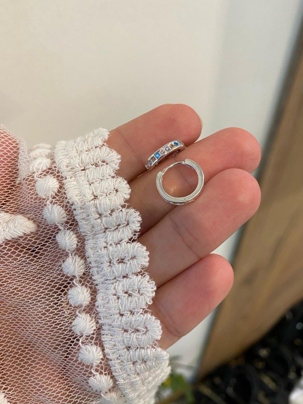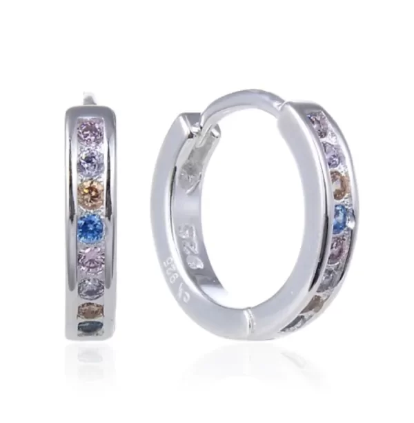 Argolla de 10 mm de diámetro con cubic de colores claros. ¡Ideales para usar en primer agujerito! Precio por par. Cód.1000002.sku 36