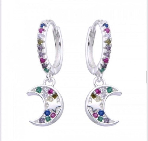 Argollitas de 10mm de Plata 925 con dije de luna con strass de colores. Precio por par. Cód.1000004. sku108