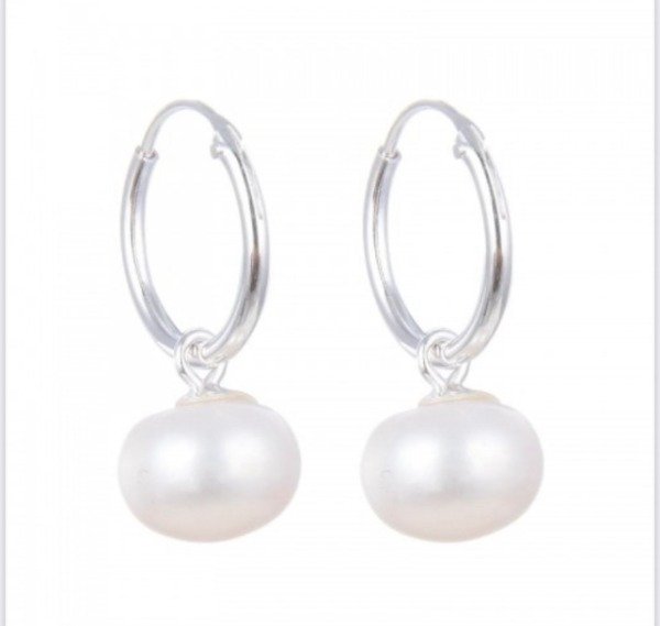 Argollita con perla cultivo , plata 925 de 10 mm. Precio por par. Cod. 1000004 sku:109