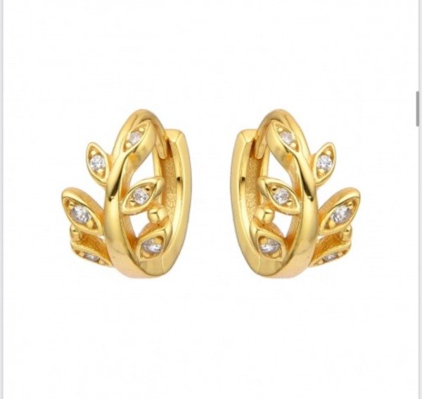 Argollitas de 8 mm de diámetro con diseño de hojitas con baño de oro. ¡Precio por unidad! Cód.5021 sku:304