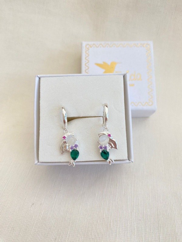 Argollitas de Plata 925 de 10mm con dije colgante de sirenita en color verde. Precio por Par. Cód. 1000005 SKU