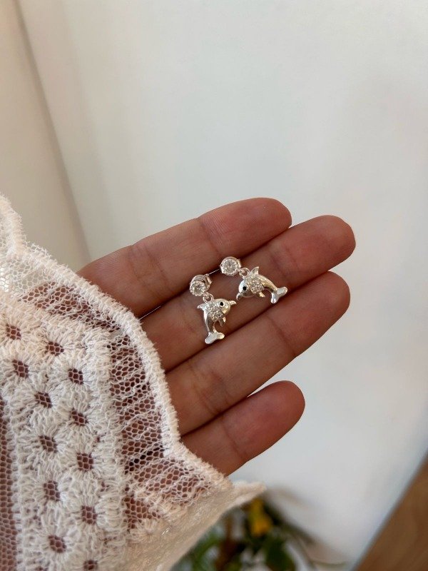 Aro pasante con strass engarzado y dije de delfin con cubic. Ideales para usar en el primer agujerito. Largo total 19mm. Precio por par. Cód.1000004 SKU:121