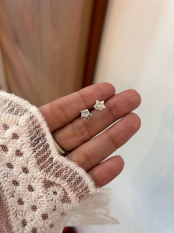 Aros pasante con diseño. Strass engarzado en el centro y estrella hueca por encima. ¡Novedosos y delicados! Ideales para primer o segundo agujerito. Precio por par. Cód.1000001 sku:115