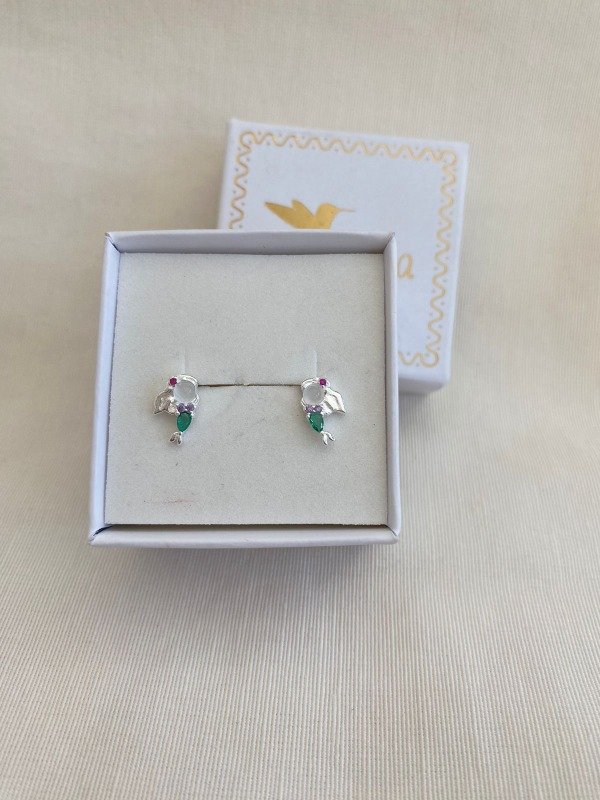 Aros de Plata 925 con diseño de sirena con color verde y perlita. Precio por Par. Cód. 1000001 SKU 166