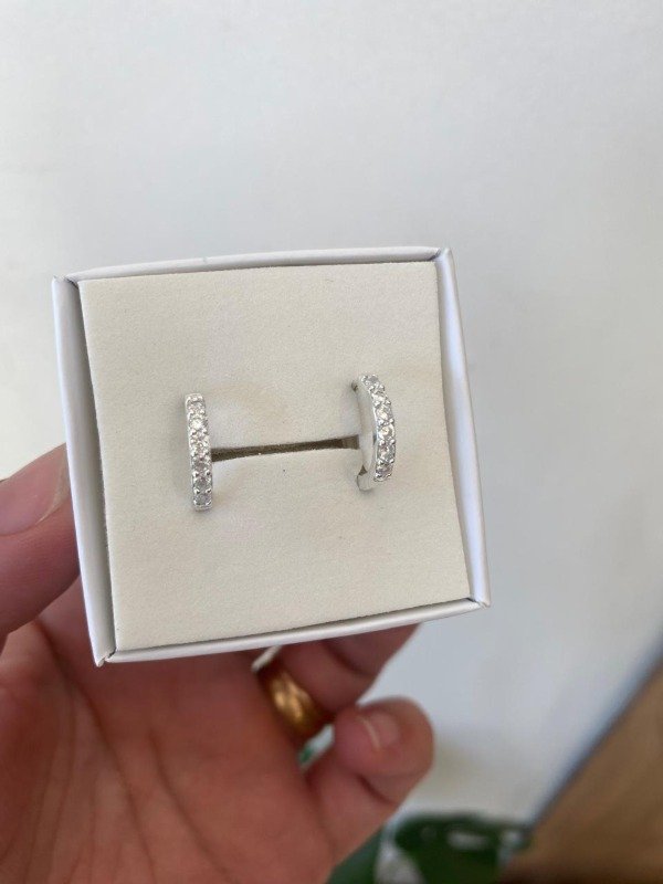 Aros pasantes media argolla con strass Plata 925 rose .Largo 15 mm. Cód. 1000002. SKU 81.