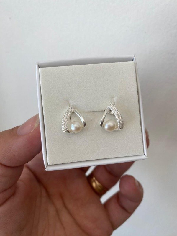 Aros pasantes con strass y perla blanca plata 925.Largo 10 mm. Cód. 1000004. SKU 153.