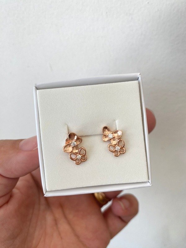 Aros pasantes mariposa con strass Plata 925 rose .Largo 15 mm. Cód. 1000018. SKU 154.