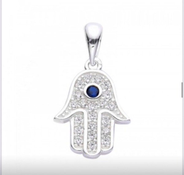 Dije de Plata 925 con diseño de manito de Fátima con cubicss. Cód.2233 sku.d-102