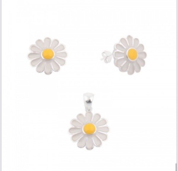Dije de Plata 925 con diseño de margarita en color blanco con centro amarillo. Cód.2233 sku.d-104